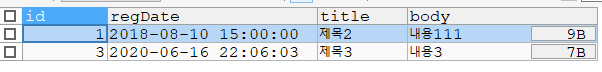# 데이터 조회(*, 이제 2번 게시물의 날짜 정보만 넣으면 됩니다.)